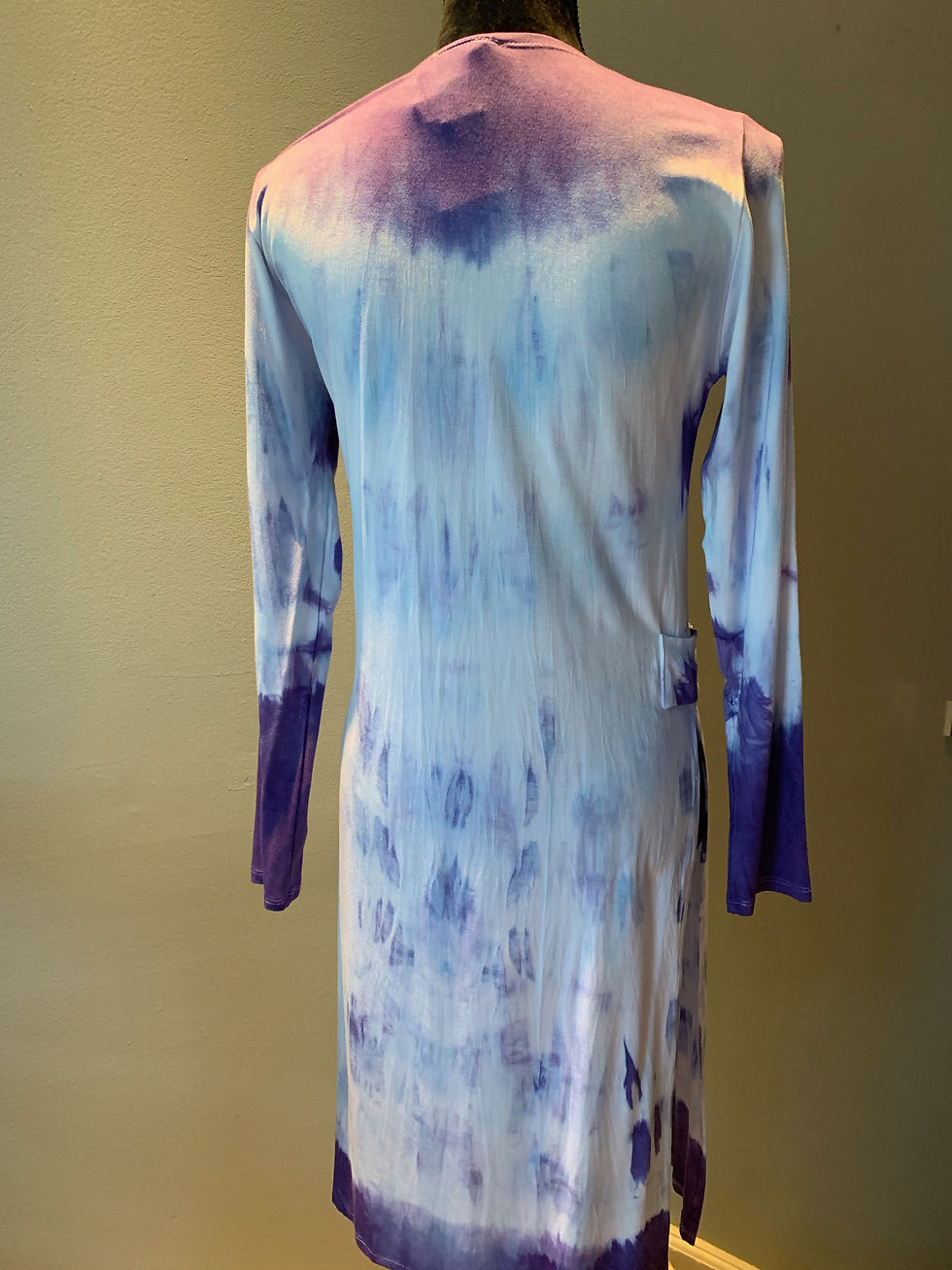 Hand Dyed Linen Wrap Dress with Long Sleeves